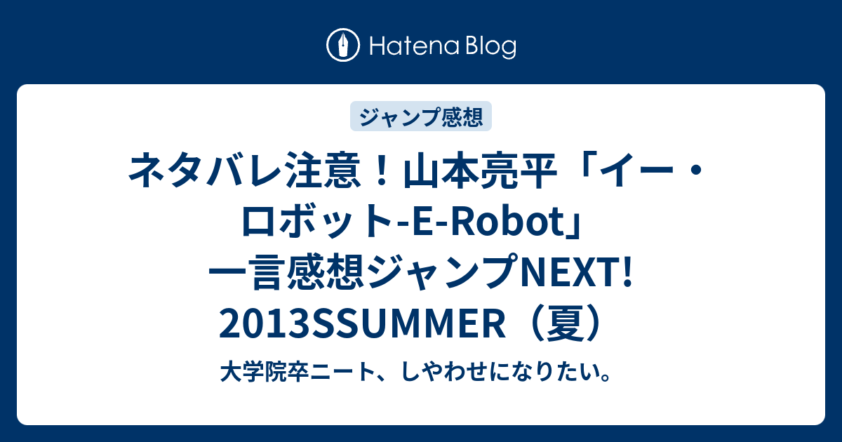 ネタバレ注意 山本亮平 イー ロボット E Robot 一言感想ジャンプnext 13ssummer 夏 大学院卒ニート しやわせになりたい